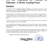 Mr. KC Statement on Violence in Pakistan - Call for Lasting Peace