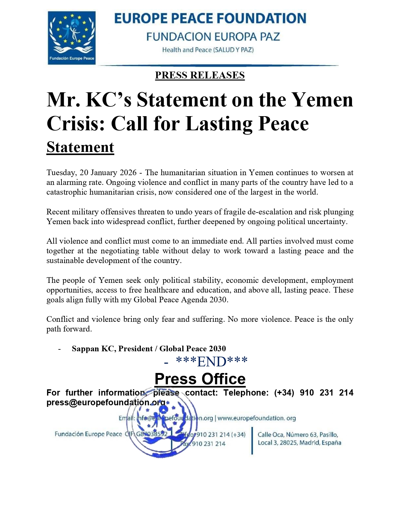 Mr. KC’s Statement on the Yemen Crisis: Call for Lasting Peace