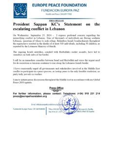 On Wednesday, September 25, 2024 – I express profound concern regarding the intensifying conflict in Lebanon. Tens of thousands of individuals are fleeing southern Lebanon, uncertain of where to seek refuge. Relentless Israeli bombardments throughout the region have resulted in the deaths of at least 569 individuals, including 50 children, as reported by the Lebanese Ministry of Health.