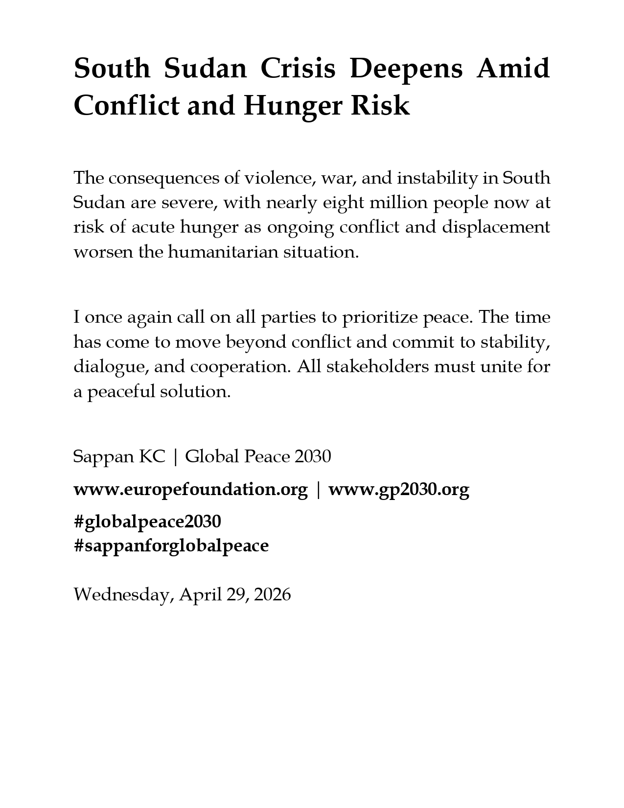 Sappan KC | Global Peace 2030